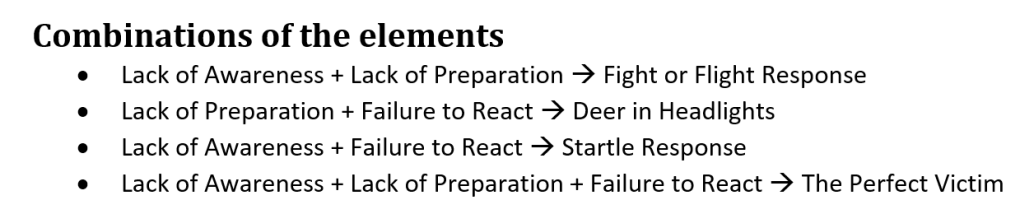 On the other hand, a person who is Aware, Prepared, and Ready to React is very difficult to victimize. The article illustrates its point by summarizing two actual incidents. Part of the analysis of the incidents described the impact of perceptions and assumptions in the encounters.