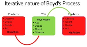 Rather than an abrupt approach, criminals observe a potential victim and decide whether they have or can gain a significant advantage over the victim. It is the first step of Boyd’s Process from the viewpoint of a criminal predator.