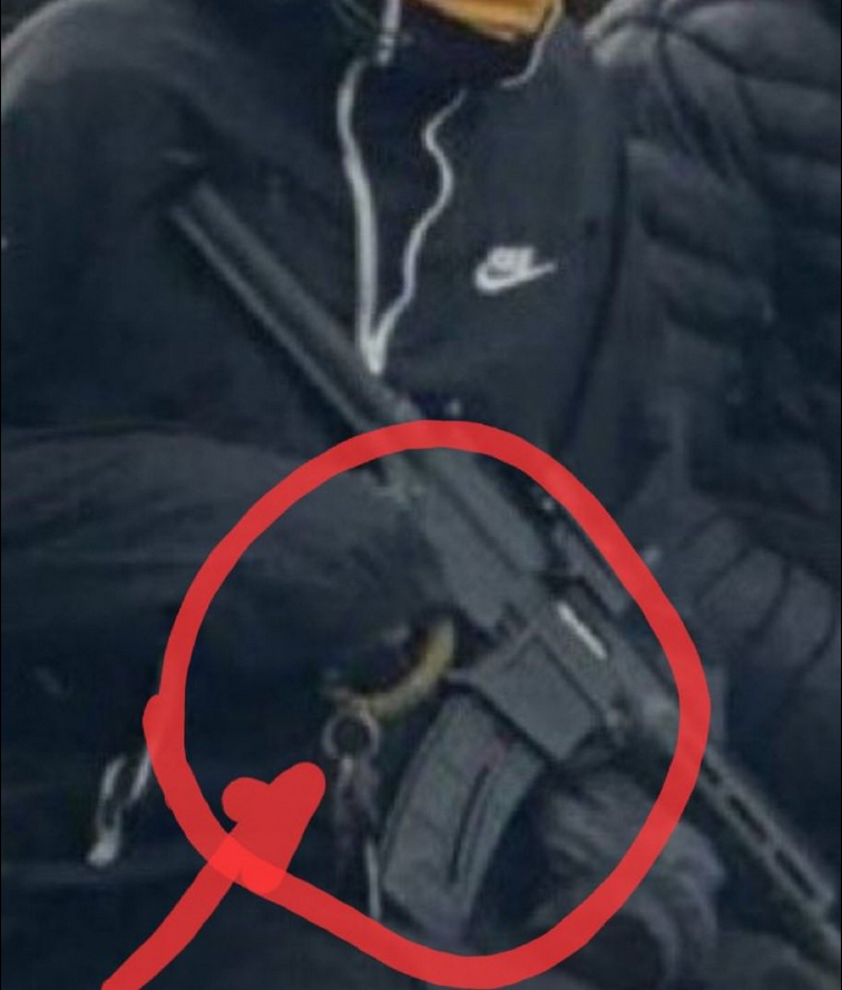 What I noticed about his magazine is that it’s an M&P 15-22 .22 rifle with a partially loaded magazine. This fact seems to escape some ‘cognoscenti’ who aren’t as cognizant as they think. The follower isn’t all the way down but it’s not obscured by the magazine well either. There are definitely some ammos in it. It might be a magazine blocked to 10 rounds.