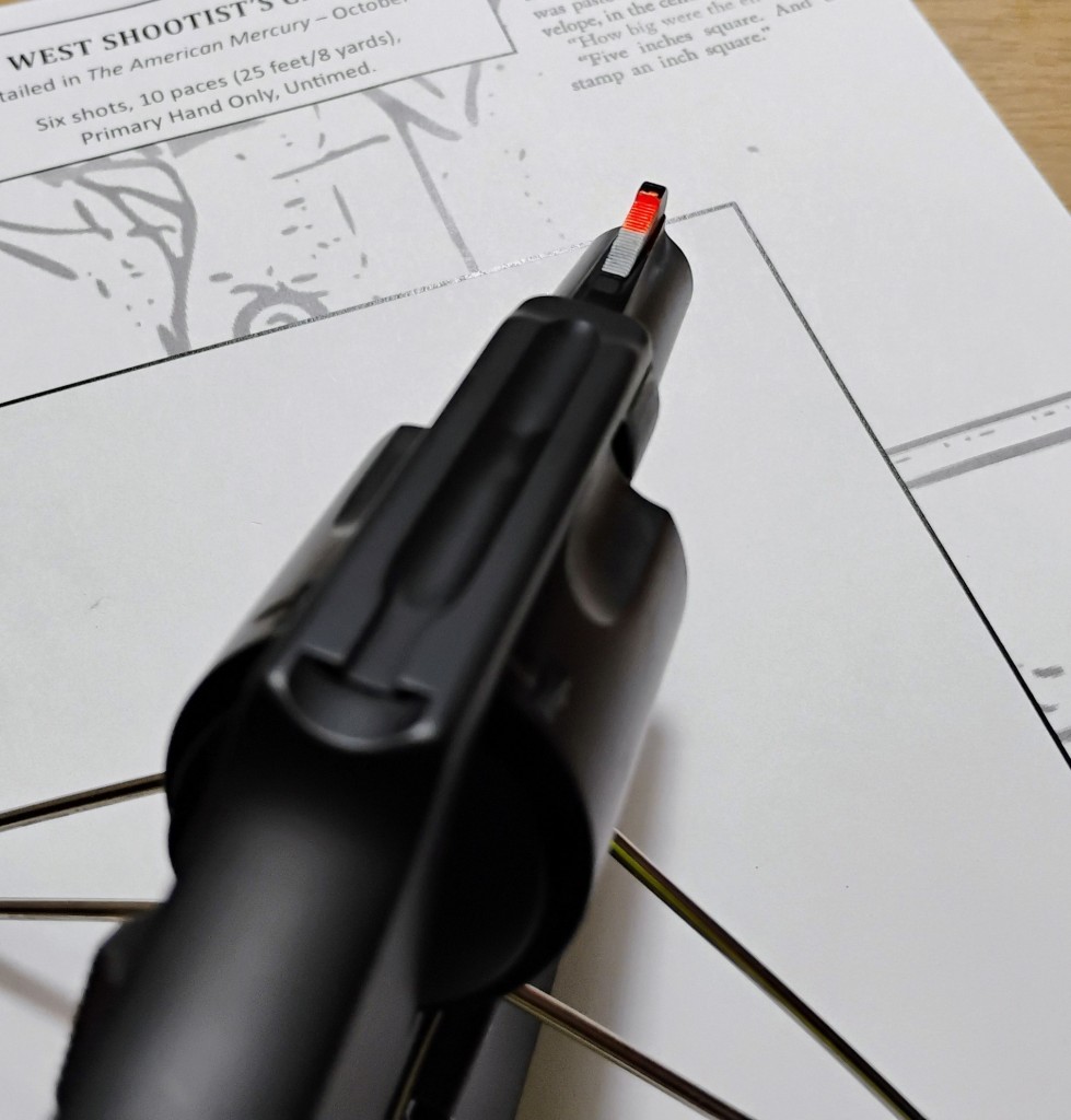 The first thing I shot was my Old West Shootist’s Challenge. https://thetacticalprofessor.net/2025/02/05/shootists-challenge-the-final-word/ with a second string inspired by Marty Robbins’ song Big Iron. “There was 40 feet between them when they stopped to make their play.”