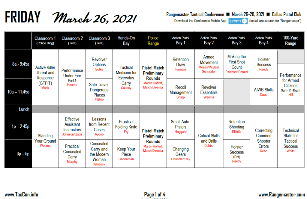 There is no other opportunity like it available for the Armed Citizen who wishes to be prepared to prevent criminal violence against themselves and their families. The Conference is held in late March each year. The 2022 Conference will be held at the Dallas Pistol Club in Dallas, Texas. Registration opens in May and sells out by October every year.