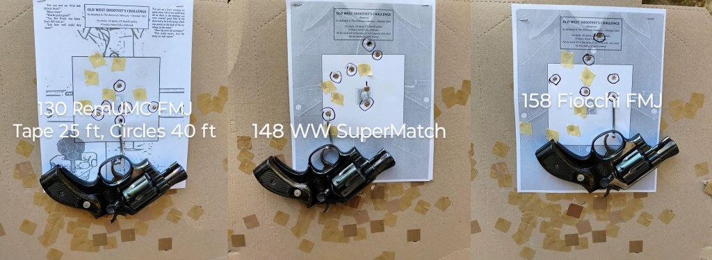 There were three loads that I tested; 158 grain Fiocchi FMJ, 130 grain Remington UMC FMJ, and the last of my 148 grain lead Winchester SuperMatch wadcutters. The test protocol was my Old West Shootist’s Challenge. https://thetacticalprofessor.net/2025/02/05/shootists-challenge-the-final-word/ To it, I’ve added a second string inspired by Marty Robbins’ song Big Iron. “There was 40 feet between them when they stopped to make their play.”