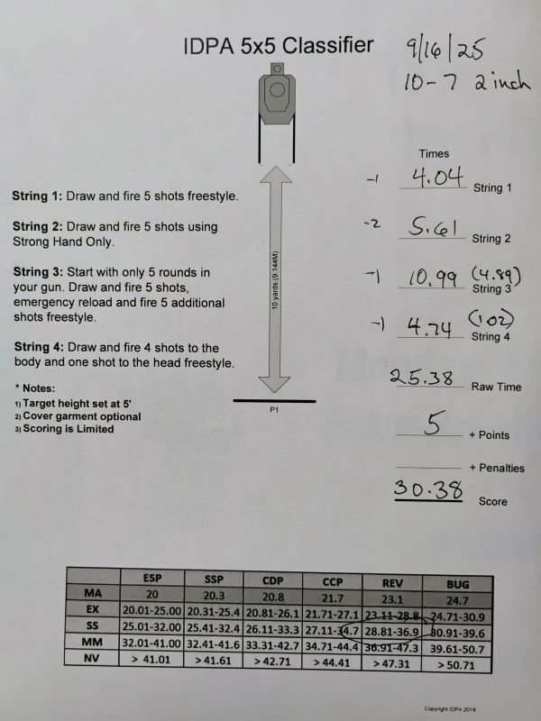 Finally, I shot the IDPA 5X5 Classifier.