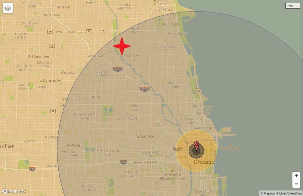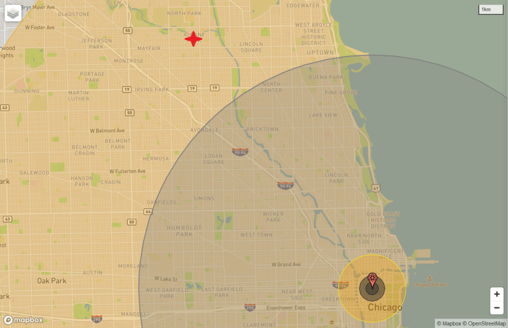 My research for this article uncovered a very informative website called Nuclear Secrecy by Professor Alex Wellerstein. An amazing part of the website is an interactive ability to input weapon and target parameters to generate a map of a weapon’s effects. https://nuclearsecrecy.com/nukemap/ All maps in this article are courtesy of Dr. Wellerstein’s website. Using this website provided even more accurate indicators of the destruction a weapon would have caused. The airburst altitude for the parameters chosen was 4,120 meters (13,596 feet).