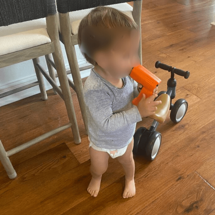 “On a related note, we baby sat our two grandchildren 1.5 & almost 3 years old boys, and while playing with his cordless drill I was amazed at the interest & ability of the 1-1/2 YO in putting the drill chuck in his mouth and manipulating the trigger to activate the drill. The drill looks a lot like a handgun profile, just no trigger guard….there were several other innocuous toys like that as well. Clear to understand how a small toddler could find a gun and place it on the floor to push the trigger while muzzle directed at their head.”