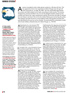 Each week the Incident Analysis Tier will feature an incident from the current Armed Citizen column of the NRA Journals. Many people are not familiar with The Armed Citizen column, which is a very useful start point for doing Incident Analysis pertaining to Private Citizens instead of the POlice. Part of my Analysis will be the marksmanship problem posed and what was needed to solve it.
