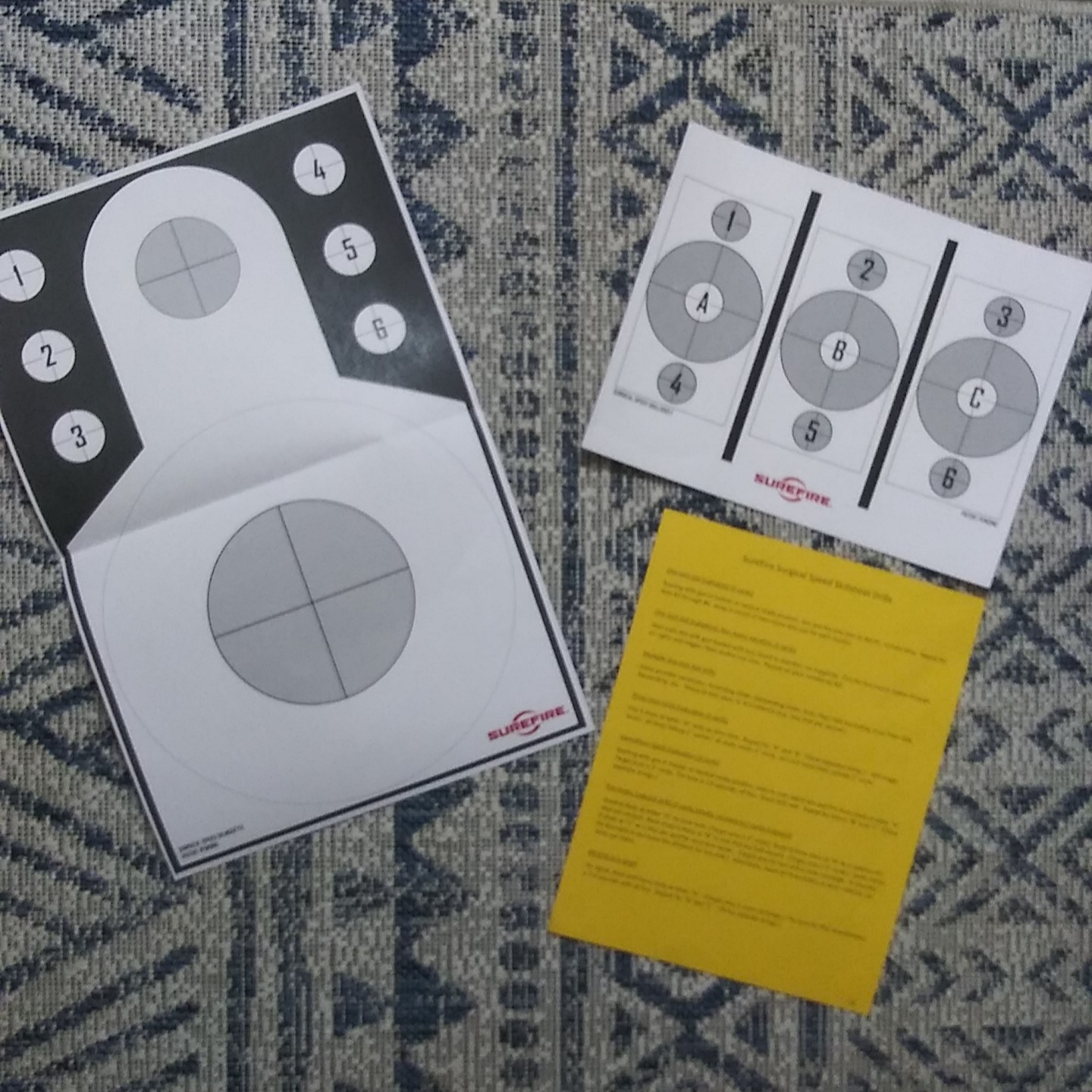 At the end of Andy Stanford’s Practical Handgun Drills class, he gave us laminated copies of the Surefire targets and a double sided sheet of drills for using them.