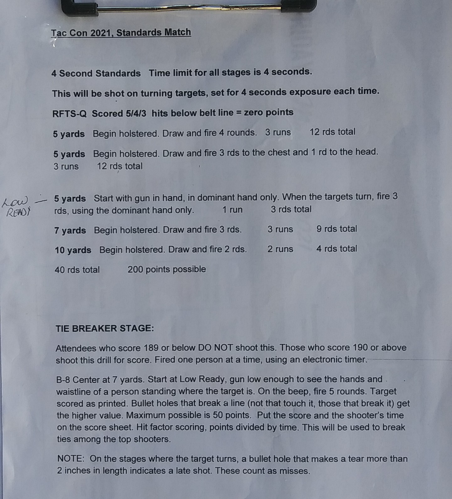 The Rangemaster 2021 Tactical Conference is in the books. A small part of the Conference is the shooting match. Of the over 200 attendees, 161 elected to shoot the match. I didn’t bring a gun because of my flight situation, so I borrowed a 642 from a friend and shot with it. Only three of us shot with revolvers.
