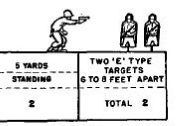 We need to keep in mind what Fairbairn and Sykes wrote their system was capable of, i.e., their performance standards. The hits had to be somewhere on the entire silhouette target; whether the legs were included is not explicitly stated but neither was it disavowed. The shooting distance of their Programme did not exceed 4 yards at any point and nearly half took place at 2 yards.
