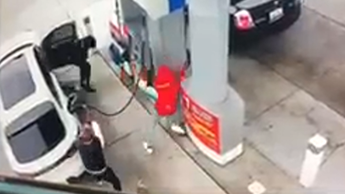 - when your gas gets started pumping, step around to the other side of your vehicle