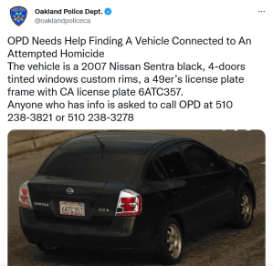 The Oakland POlice Department has posted a clear picture of the getaway vehicle.