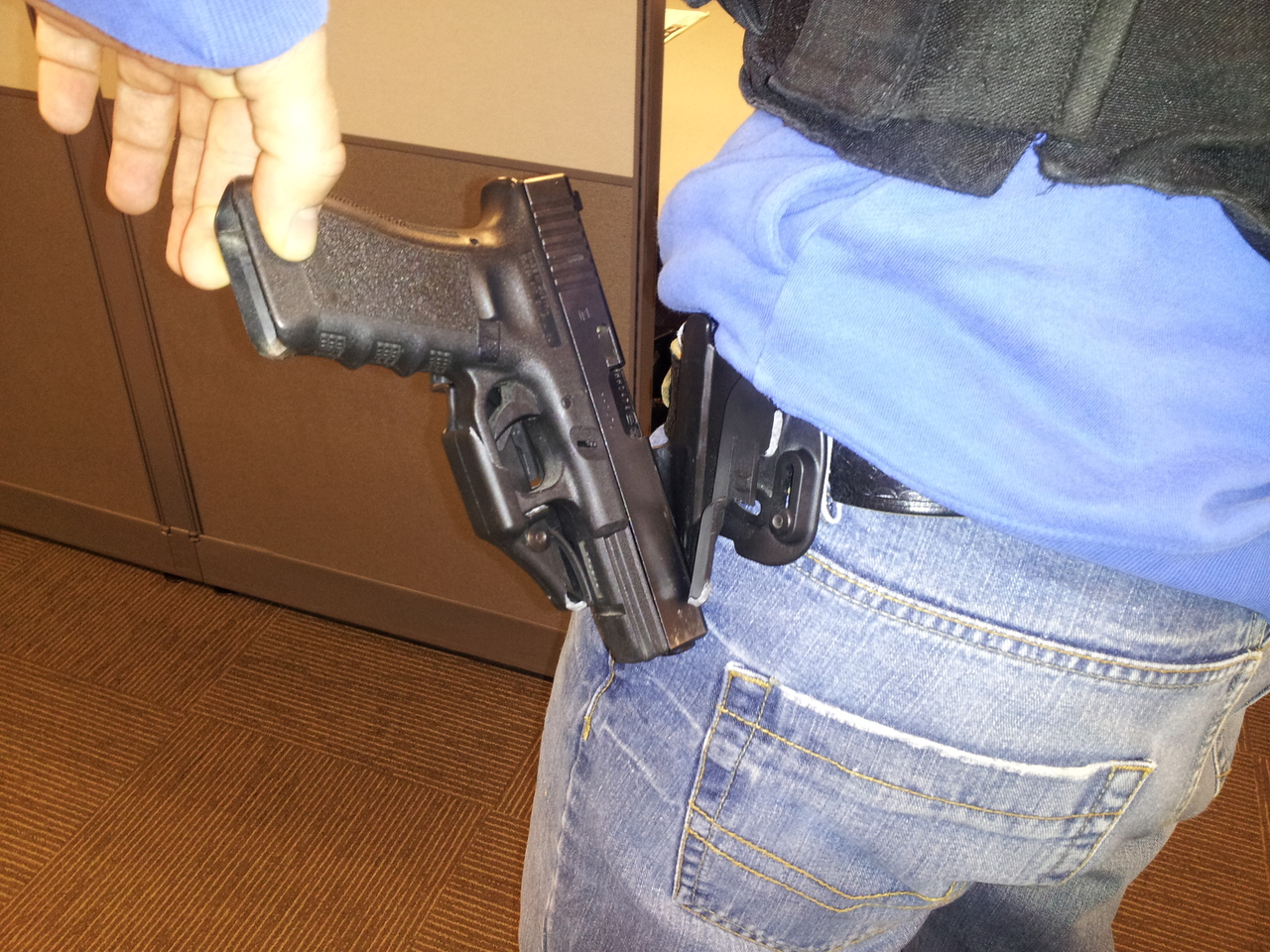 The reason I included John’s quote began with a statement he made in the first DTI class I took. The statement was “Eighty percent of police officers who are shot shoot themselves.” Once again, he was not referring to suicide but rather negligent shootings where the officer injured himself or herself. Whether that is still true, I don’t know. I do know that holster manufacturers are sued numerous times each year, unsuccessfully, by police officers who shoot themselves in the process of drawing or holstering. However, given the multiplicity of reports I have about private citizens who accidentally shoot themselves, I wouldn’t be surprised. It happens a lot more often than we like to think. The two casualties I have had on ranges I have been running were self-inflicted non-fatal wounds. One was a highly trained and experienced police officer who had a momentary lapse of concentration and technique.