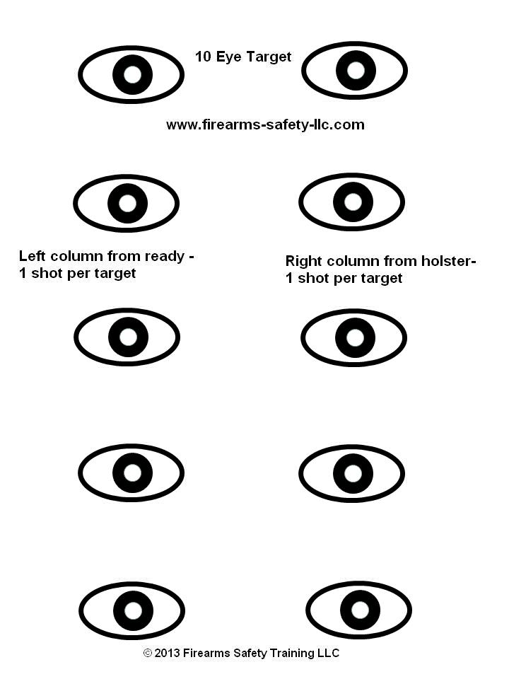 | 180 degree pivot. One round each at 3 targets (twice). Turn left, then right. | Concealed Holster | 3.50 (7.00 total) | 6 |