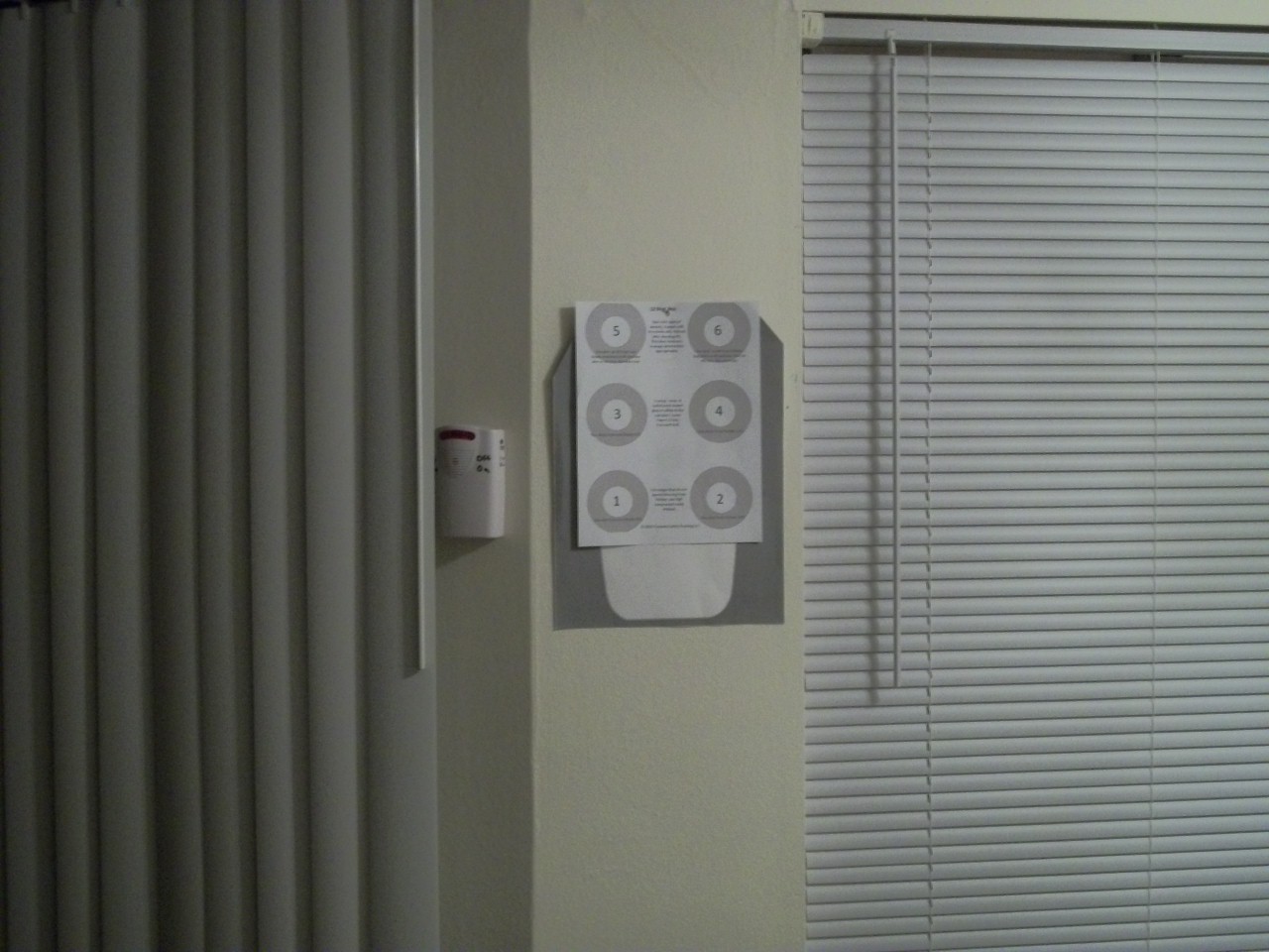 The first time I did the program, when I was at the GF’s house, I’d do it in the bathroom by using the tile intersections as targets. She finally figured out what I was doing and had me set up a little dryfire range in the spare bedroom. The range consisted of a reduced size target behind a picture and a cassette tape I had made with a specific regimen on it. Eight minutes and I was done.