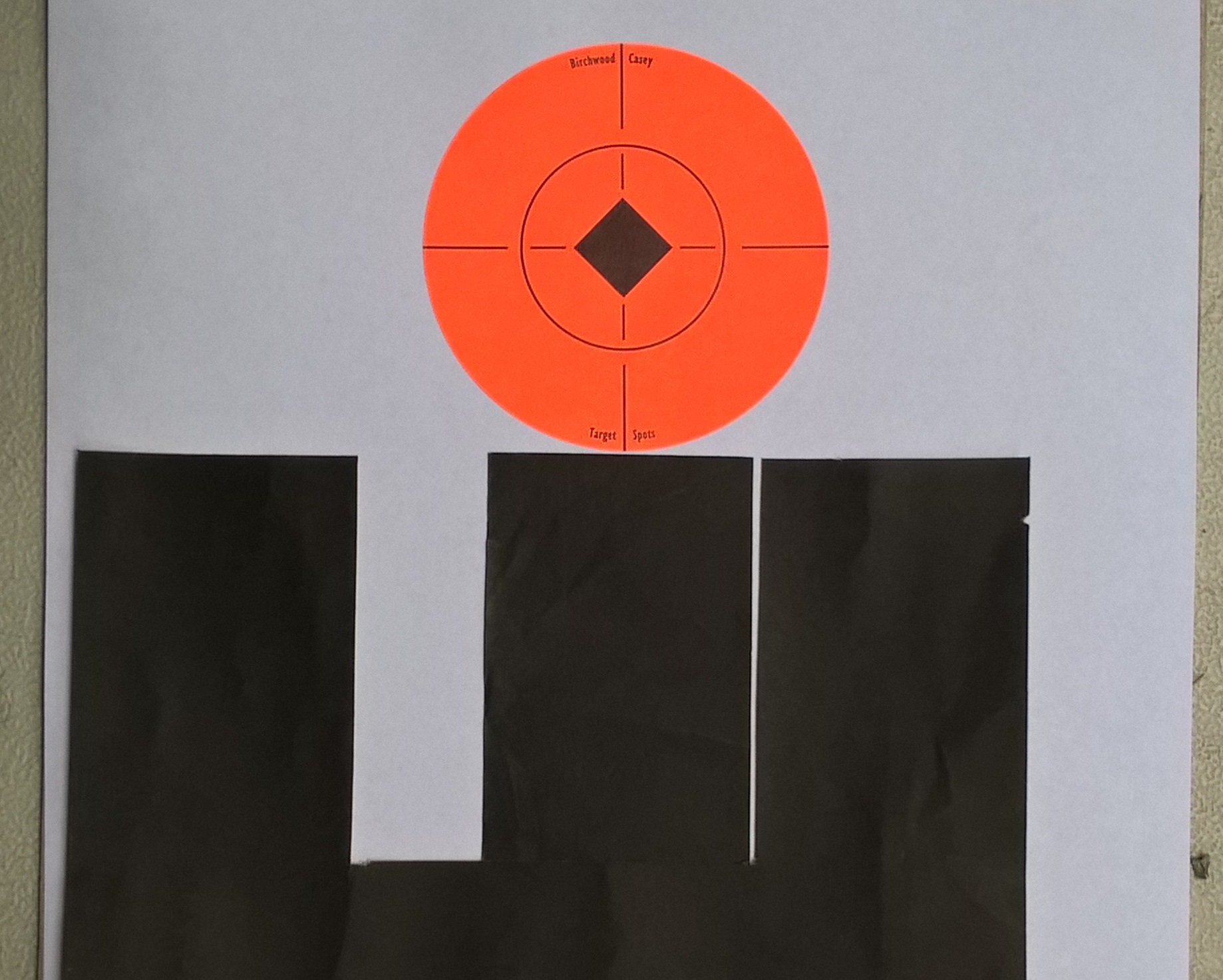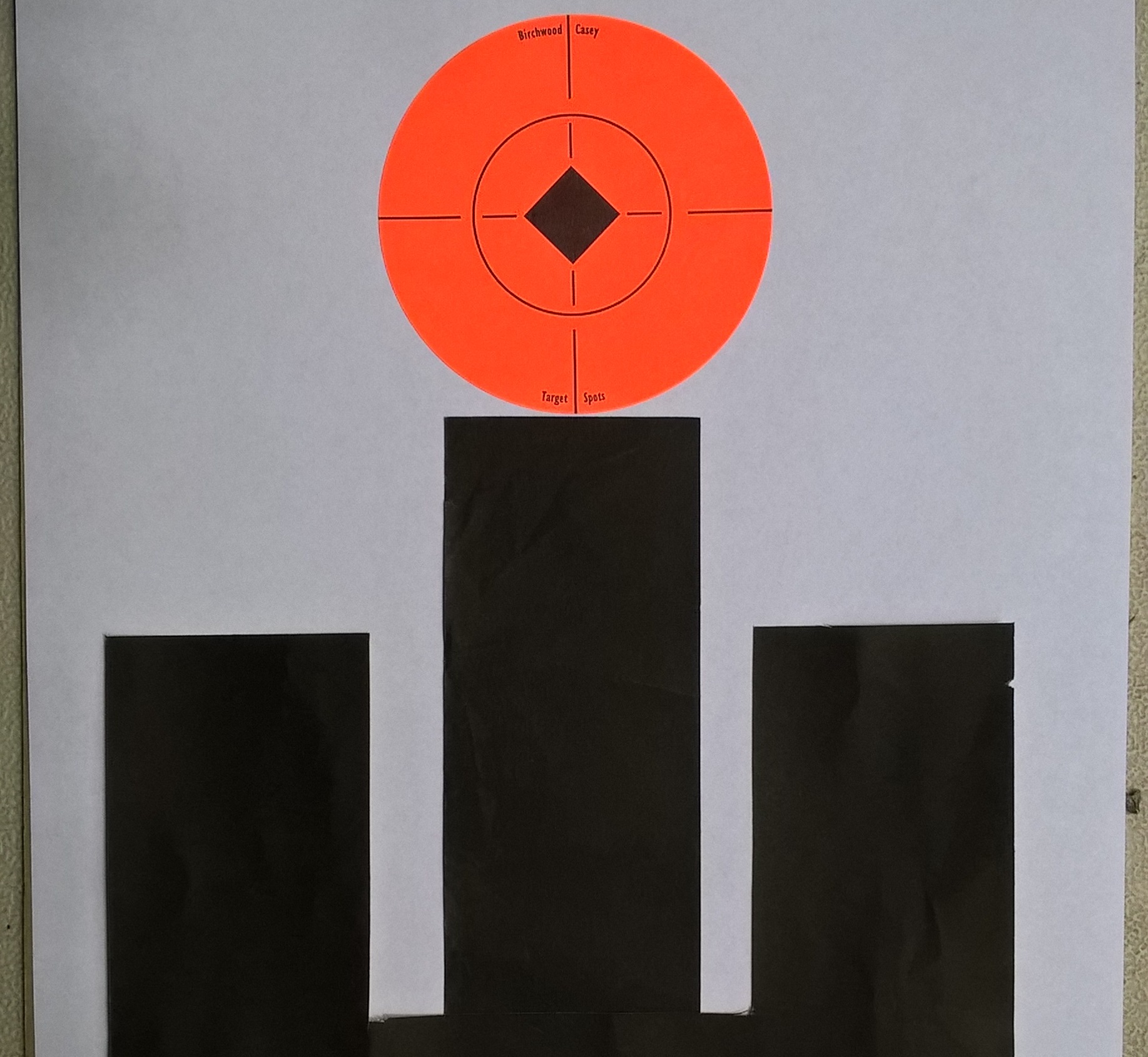 - Any silhouette target; B-27, B-21, Q, IDPA, IPSC, etc. Put a 2-3 inch aiming point on the silhouette in about the center of the target.