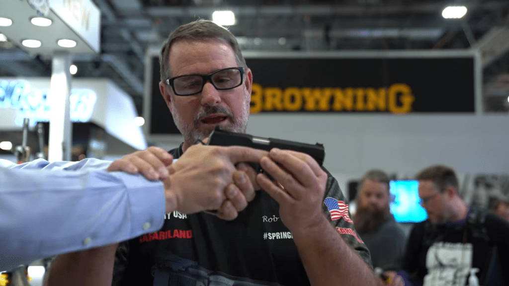 Note how he tests the tension of the shooter’s wrists at 1:05. With a handheld recoil-operated firearm, tensioned wrist(s) are a key input for the gun’s functionality. If the shooter’s wrists are not adequately tensioned, the receiver of the gun moves at the same time the slide is cycling. When the receiver moves simultaneously with the slide cycling, the possibility of the slide not completing its travel fully to the rear increases. Failure to maintain tensioned wrists is often referred to as ‘limp-wristing.’