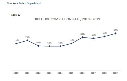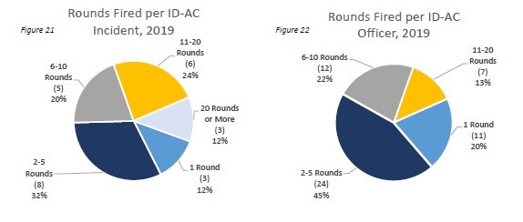 In 2019, uniformed members of the service successfully stopped the threat by discharging their weapons in 24 of the 25 ID-AC incidents, with at least one subject shot in each of those 24 incidents, for an objective completion rate of 96%. The objective completion rate is used for statistical and informational purposes, and is not a factor considered in the investigation of the individual incidents.”