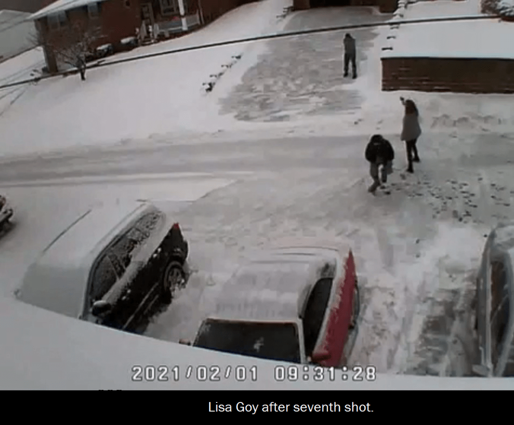 “Lisa Goy at one point returns to her shoveling, but stops again to call Spaide ‘scum’ in the seconds before he returns with a handgun.