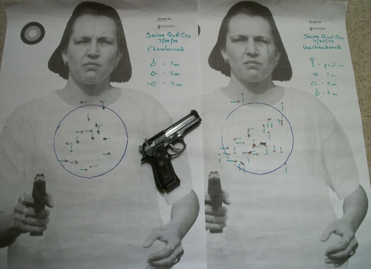 The first was the result of shooting the Swiss concealed weapons qualification test. A friend of mine lives there and recently obtained his license. The Swiss don’t have a training requirement, per se; rather they have a testing process consisting of a written test on legal aspects and a practical test (what we would call a qualification course). They are both administered by the Swiss Polizei. The written test must be passed before the practical test can be taken.